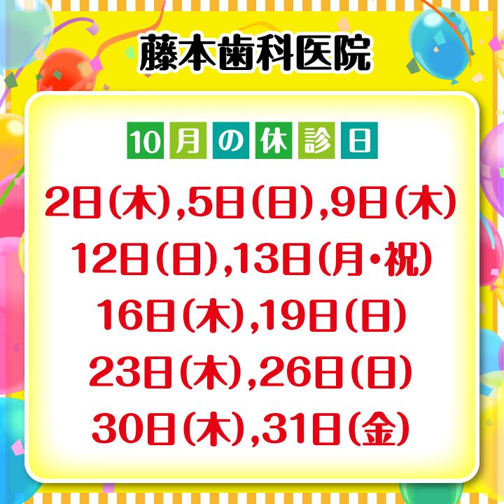 10月休診日情報